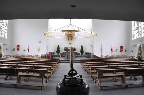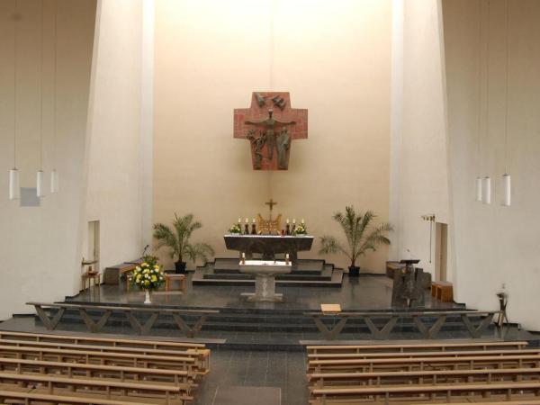 Umbau von Kirche und Pfarrzentrum. Zum 50-jährigen Kirchenjubiläum, Weihe des neuen Altars durch Weihbischof Ulrich Boom